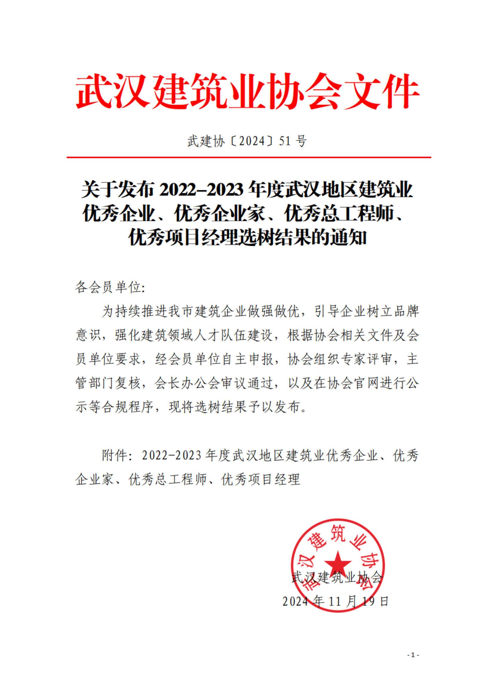 • 2024-11-22湖北省建工第五建設(shè)有限公司榮獲2022-2023年度武漢地區(qū)建筑業(yè)“四優(yōu)”...[]